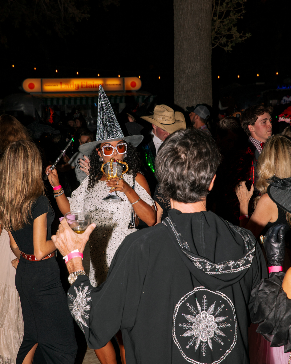 Goode Co.’s Yonderlust cocktail trailer brought the potions, Lady Elaine poured spooky cocktails, and Goode Co. & Local Roots kept bellies full with bites made for dancing under the stars. Guests even found themselves mingling with alpacas in witch costumes, thanks to Texas Party Animals, proving that in Round Top, even the animals know how to party.